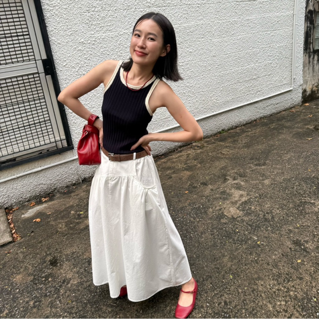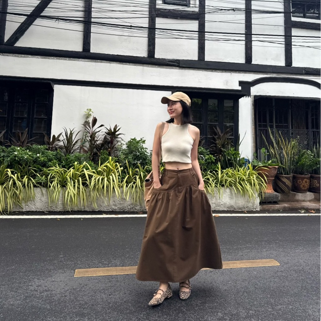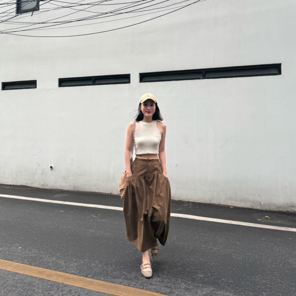 กระโปรงบานยาว ตีเกล็ดเฉียงด้านหน้า