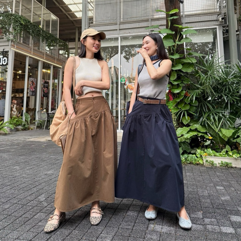 ✨จัดส่งทันที✨กระโปรงยาวสีพื้น มีซิปข้าง ผ้าอย่างดี ดีเทลแต่ง…