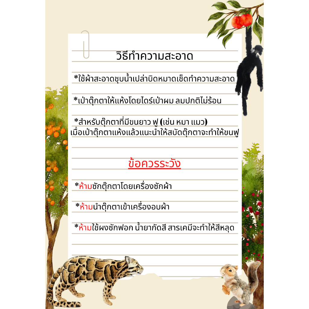 การออกแบบโดยใช้เนื้อผ้านุ่มชั้นดีคุณภาพสูงออกมาเสหมือนจริงแม้กระทั้งขนของสัตว์จะมี