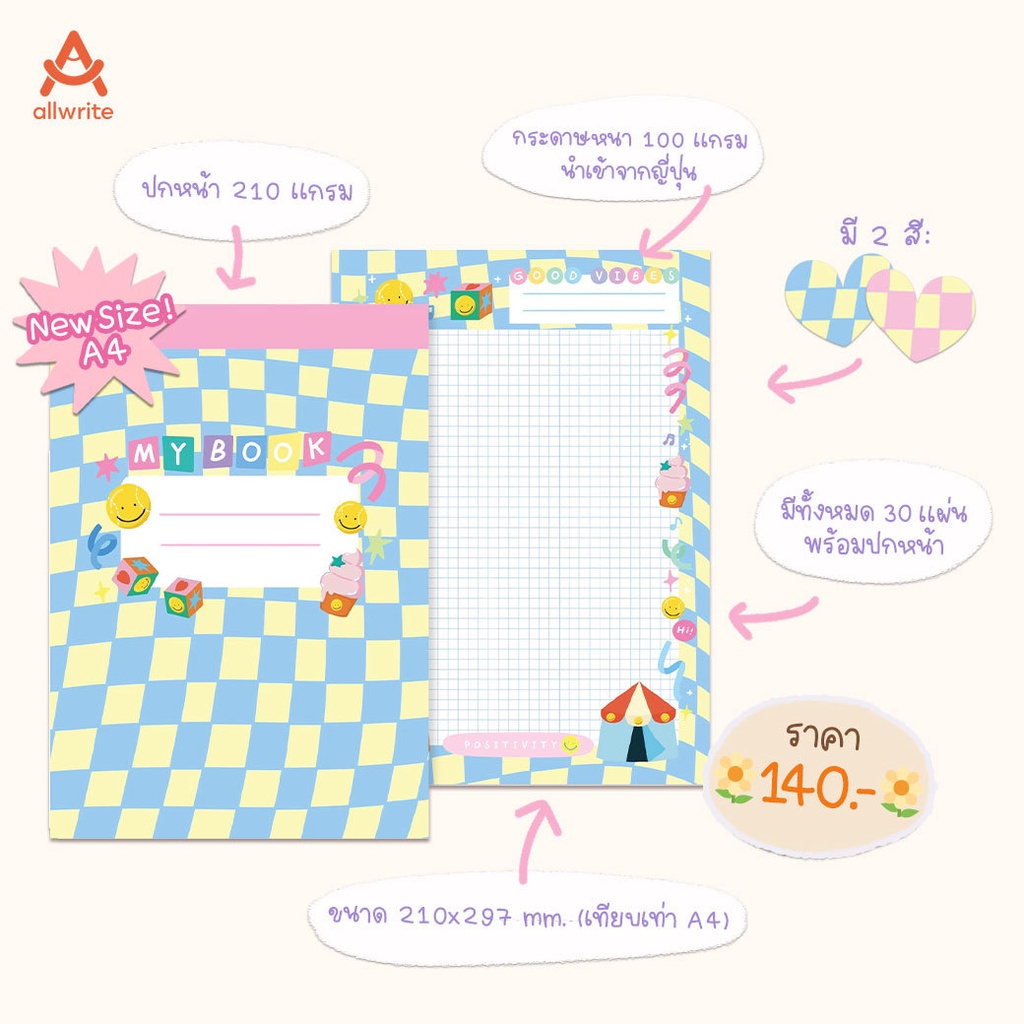 ☁️ สมุดโน๊ตเล่มเล็ก ขนาด 210x297 MM (เทียบเท่า A4)