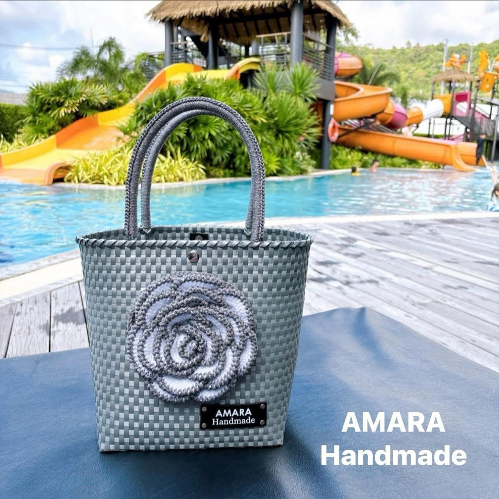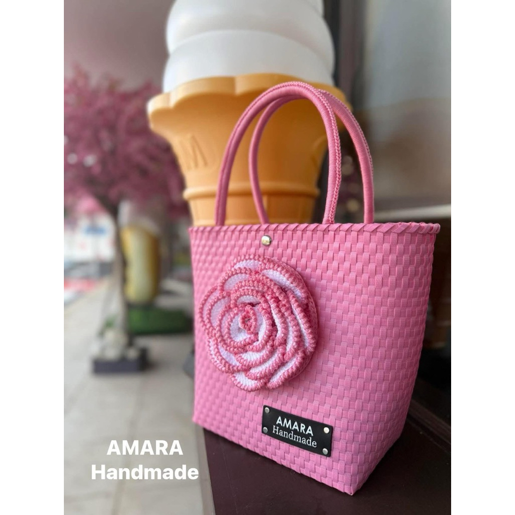 กระเป๋าสายถักโคเชต์ ดอกไม้ถักโคเชต์ ทูโทน size s