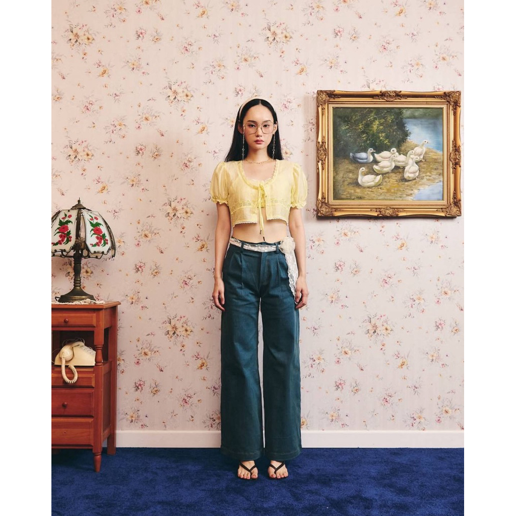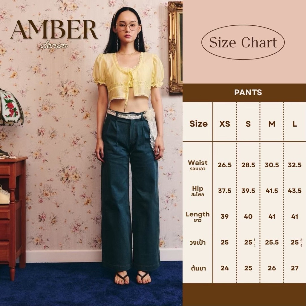 ➖กางเกงผ้ายีนส์ขายาวรุ่น Amber เป็นกางเกงยีนส์จับทวิต ความสูงเอวกลาง ทรงขากว้าง สียีนส์อมเขียว สไตล์วินเทจ ช่วยพรางรูปร่าง ใส่สบาย ให้ลุคที่ดูสง่าแต่สบายๆ