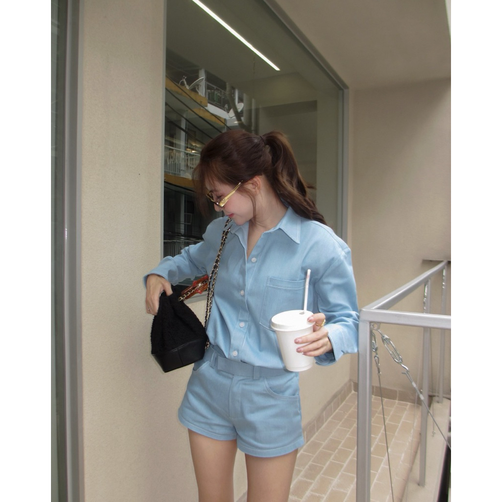 ชุดเซ็ทยีนส์ที่ใส่ได้ตลอดกาล มาเสิร์ฟให้ทุกคนแล้วค่าา น้องเป็นผ้ายีนส์พรีเมี่ยม ผ้านุ่ม ยับยาก ใส่สบาย มีดีเทลลูกเล่นที่เส้นด้ายตัดกับสีของเนื้อผ้า เสื้อจะเป็น oversize ด้านหน้ามีกระเป๋าใช้งานได้จริง กางเกงจะเป็นเอวกลาง ค่อนข้างสั้นน้า สม็อคด้านหลัง ด้านหน้าเป็นตะขอ หรือหาเข็มขัดมาใส่ก็เก๋สุดๆ (ไม่มีเข็มขัดน้า)