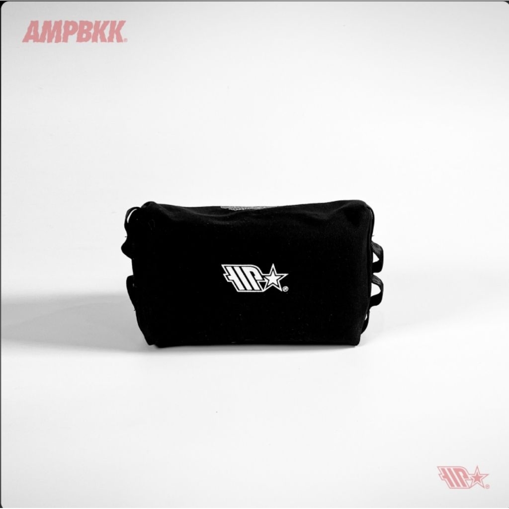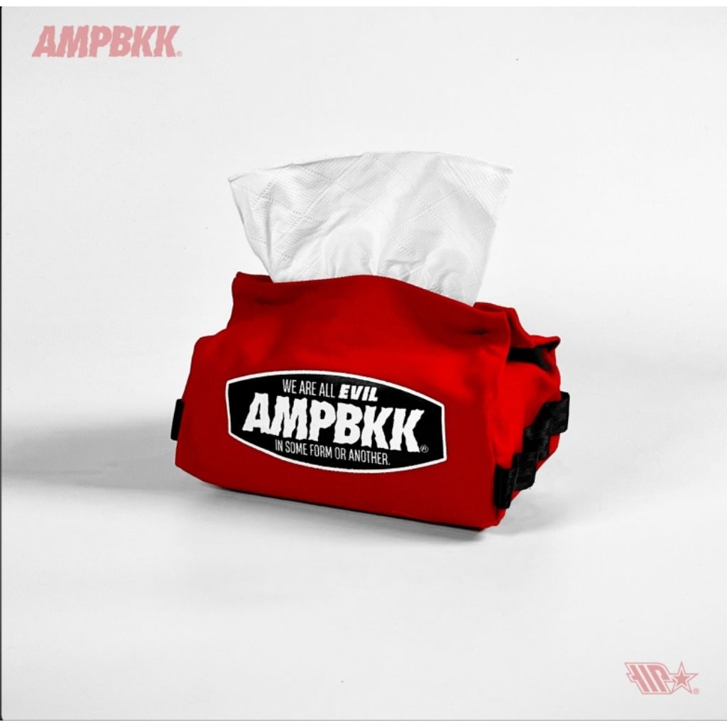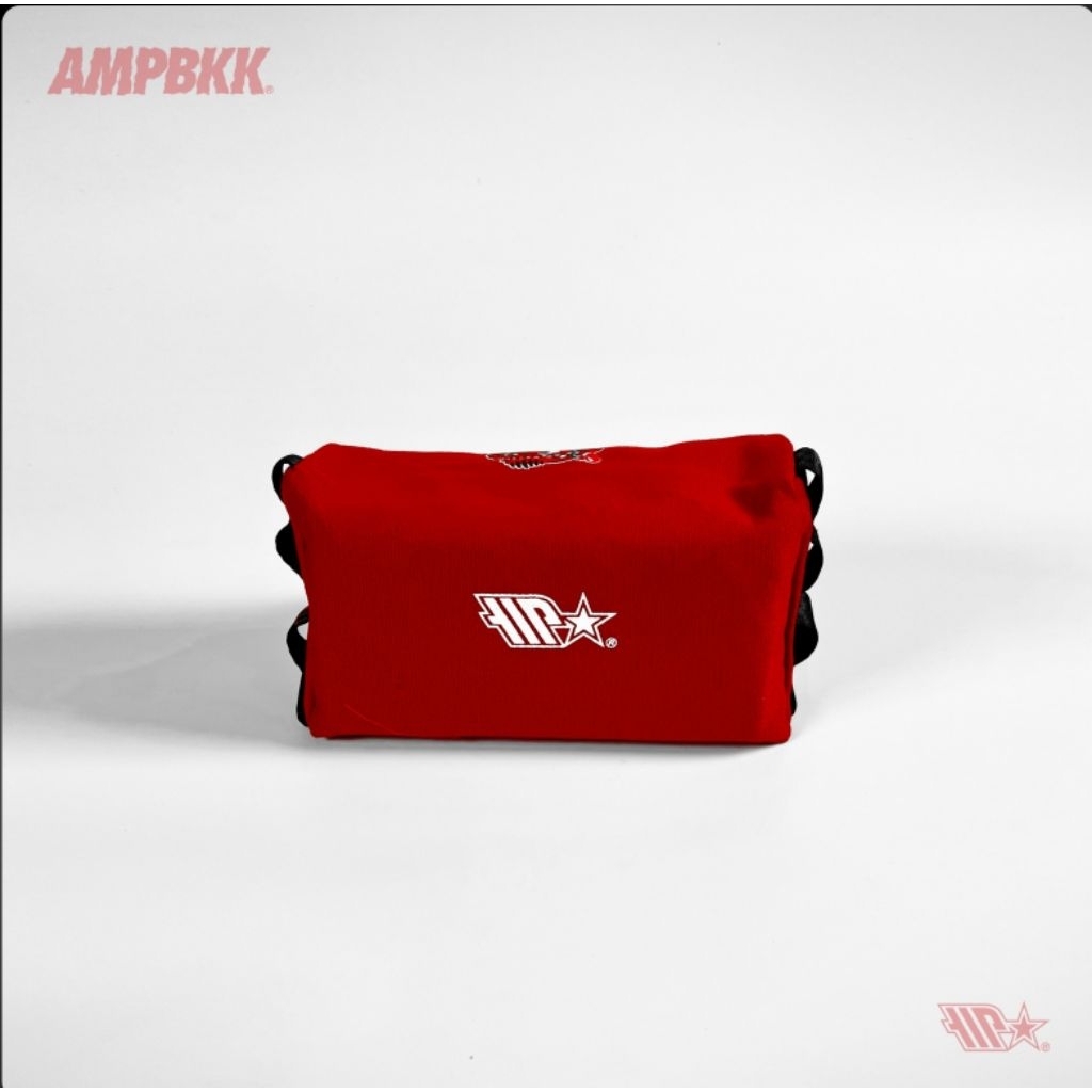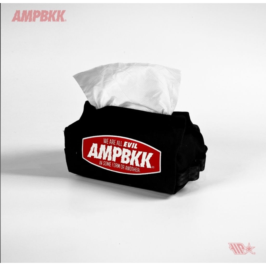 A.M.P. Canvas Tissue Holder, screened logo on front and back. Carabiner loop on both side. Suitable for camping or use it at home.
