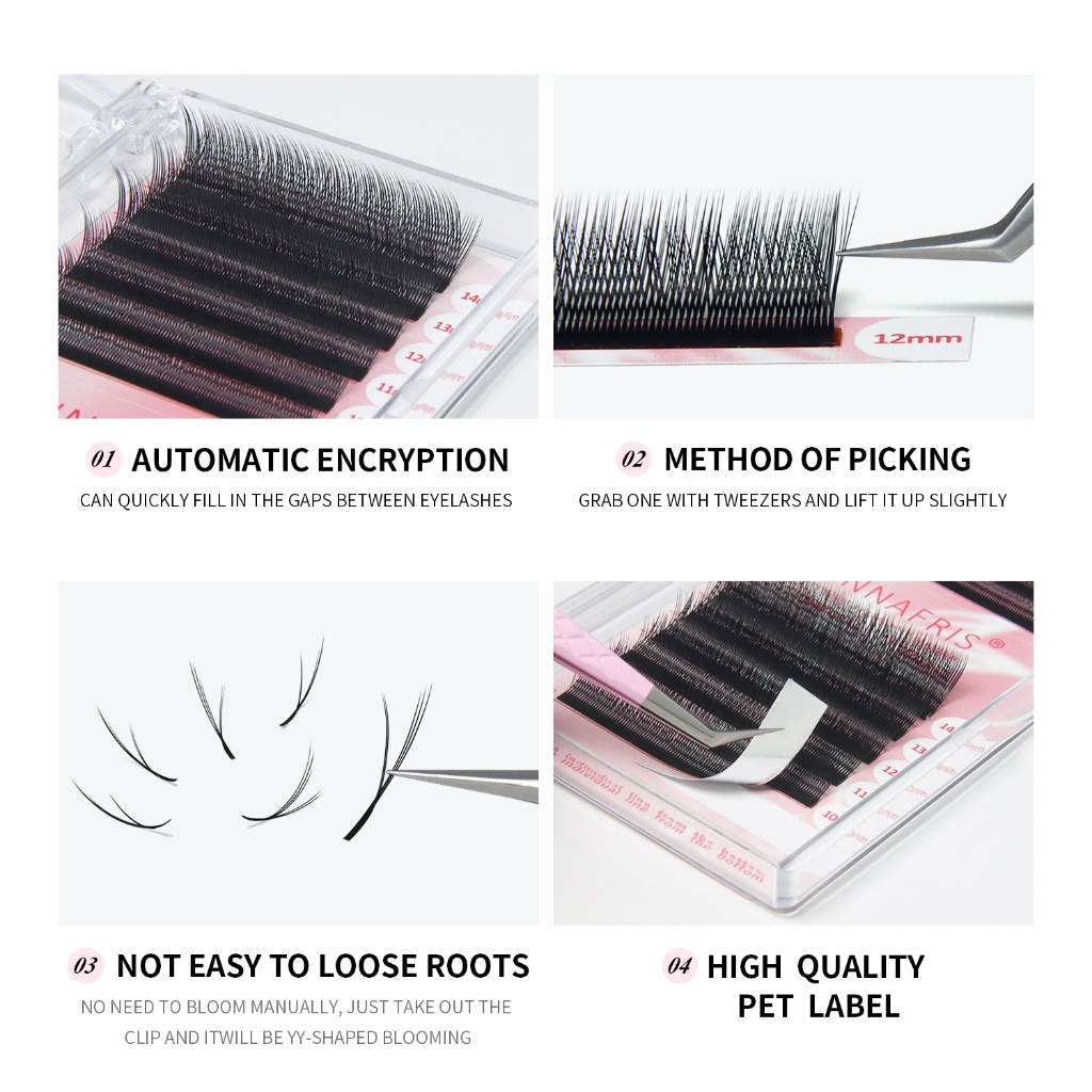 ANNAFRIS Fox YY Eyelash Extensions Fox Flying 3DW 4DW Premade Volume Lashes Handmade ธรรมชาตินุ่มพรีเมี่ยม Y รูปร่างขนตา