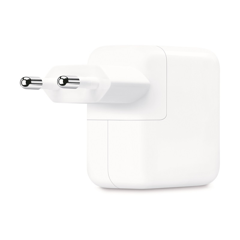 อะแดปเตอร์แปลงไฟ USB-C แบบพอร์ตคู่ขนาด 35 วัตต์ให้คุณชาร์จอุปกรณ์สองชิ้นพร้อมกันได้ไม่ว่าคุณจะอยู่ที่บ้าน ที่ทำงาน หรือขณะเดินทาง ซึ่ง Apple ขอแนะนำให้ใช้กับ MacBook Air และคุณยังสามารถใช้งานกับ iPhone, iPad, Apple Watch และ AirPods ได้อีกด้วย