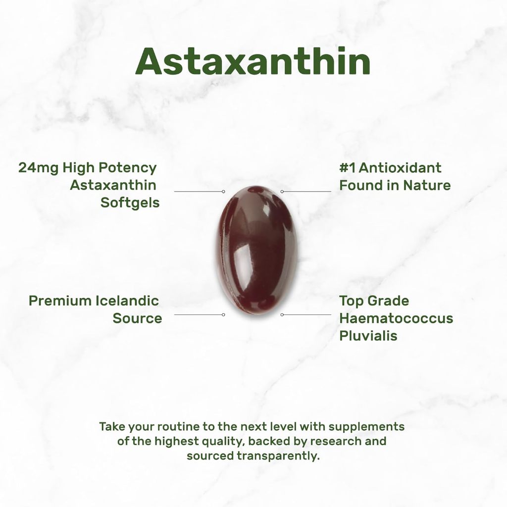 Special Features – Double Strength 24mg Astaxanthin Softgles harvested from pristine Icelandic microalgae. Provides top grade haematococcus pluvialis astaxanthin that retains a rich source of antioxidants and carotenoids.