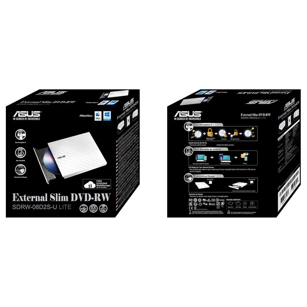 อัสซุส SDRW-08D2S-U LITE เป็นเครื่องบันทึกดีวีดีภายนอกที่มีความสามารถในการทำงาน 8X เป็นการออกแบบที่ทันสมัยและน่าพกพา รูปลักษณ์คล้ายกับตาข่ายของไดรฟ์นั่นเอง ได้รับแรงบันดาลใจจากเพชรทำให้ผลิตภัณฑ์เป็นเอกลักษณ์จากทุกมุม คุณสมบัติเพิ่มเติม ได้แก่ USB 2.0 และ E-Green Engine เพื่อการจัดเก็บข้อมูลออพติคอลที่ดีที่สุด