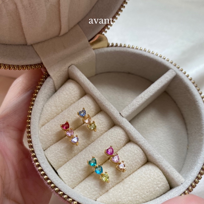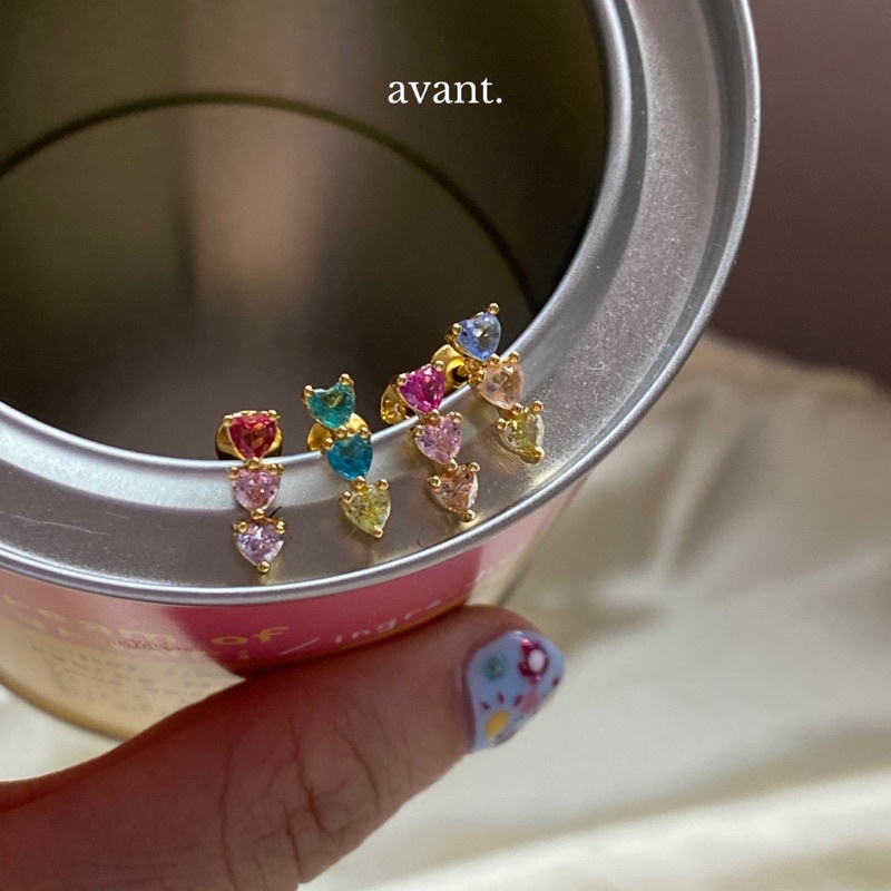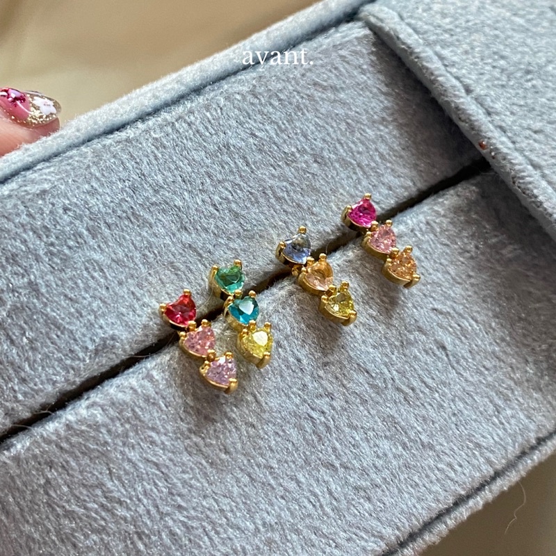 💗 triple shot stud earrings 169.- น้องเป็นต่างหูรูปหัวใจสามชั้นที่ทางร้านแมทช์เลือกแมทช์สีมาอย่างลงตัว วัสดุทองเหลืองชุบทอง 18K (nickel-free) แพ้ง่ายใส่ได้น้า ขนาดไม่เล็กไม่ใหญ่ 11x4 mm งับ มีให้เลือกถึง 4 สีนะคะ rosy/classy/turquoise/sweety