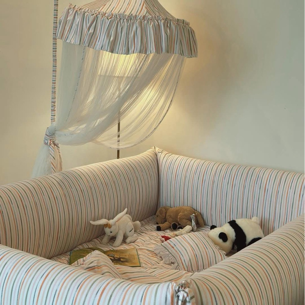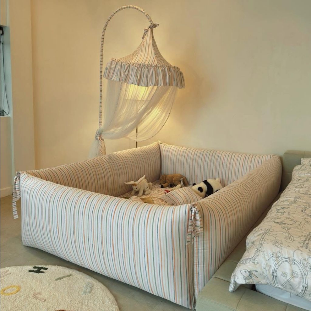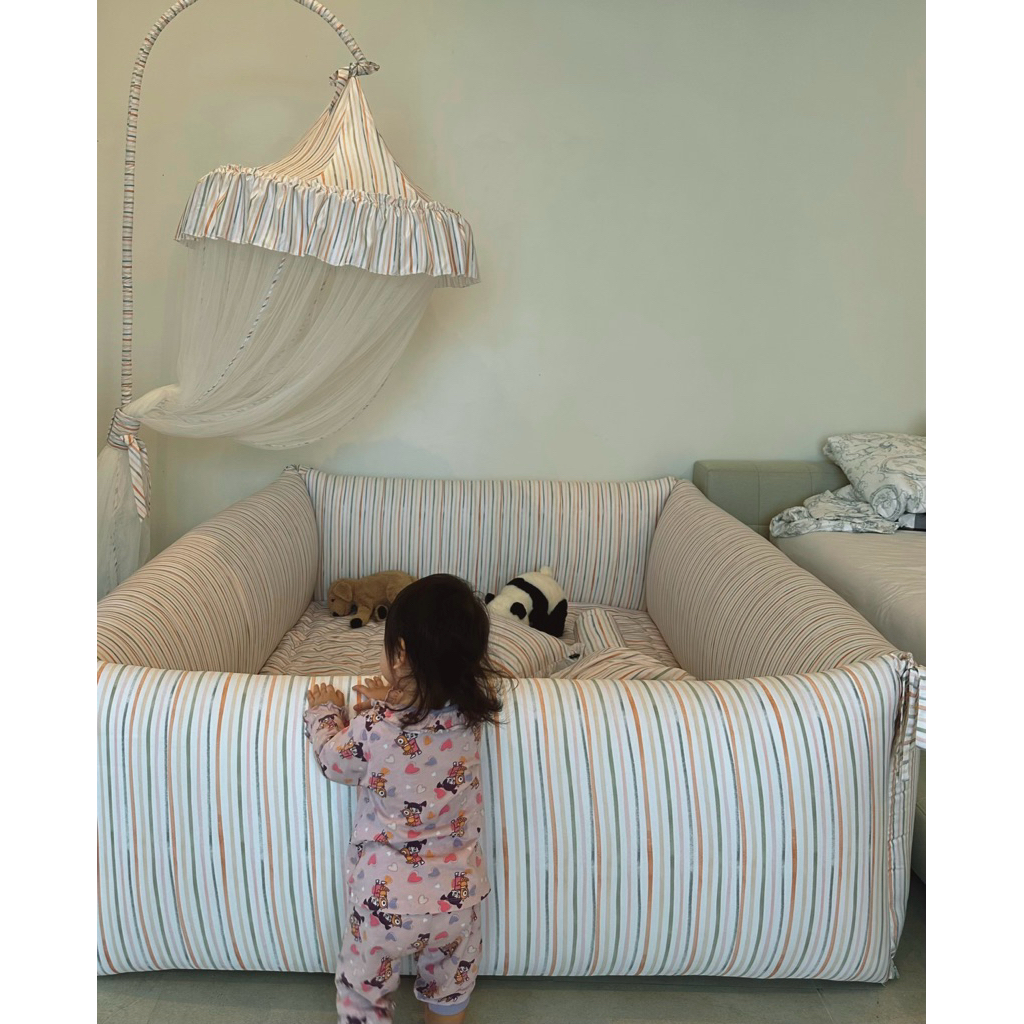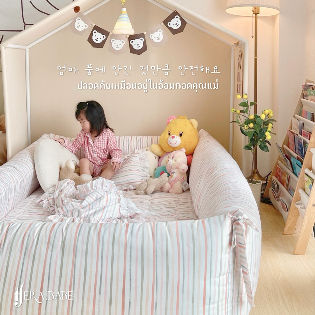( 𝘼𝙡𝙡 𝙞𝙣 𝙊𝙣𝙚 𝙗𝙖𝙗𝙮𝙗𝙚𝙙 ) ที่นอนคอกกั้นและพื้นที่ปลอดภัยสำหรับลูกน้อย หลับสบาย ห่ายห่วง หมดกังวลเรื่องลูกนอนตกเตียง ด้วยขอบที่นอนสูงหนานุ่มกันกระแทกรอบทิศทาง พื้นที่ปลอดภัย สามารถนอน ฝึกนั่ง ฝึกคลาน ฝึกเกาะเดิน หรือนั่งเล่น ภายในได้อย่างปลอดภัยเนื้อผ้า Micro Silk satin (anti-bacterial) ผ้าเกรดดีที่สุด เนียน ลื่น นุ่ม ไม่ร้อน ไม่ระคายเคืองผิวถอดซักได้ และเปิดออกได้ทุกด้าน วัสดุด้านใน anti-bacteria ชั้นวัสดุกระแทกเกรดพิเศษ ปลอดภัยไม่บาดเจ็บ