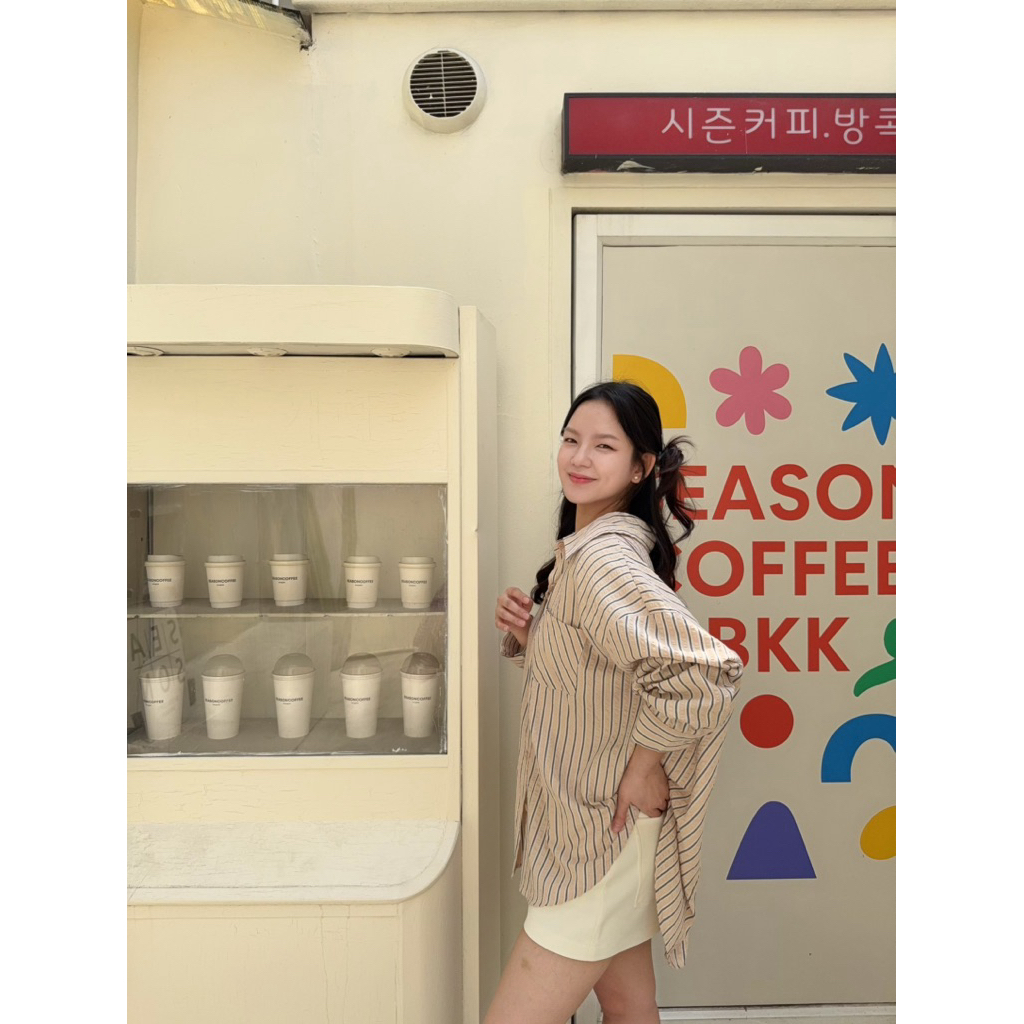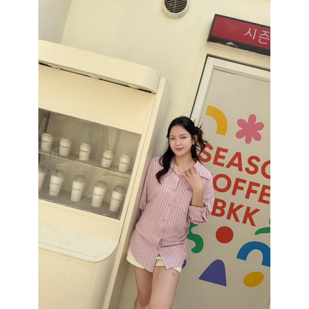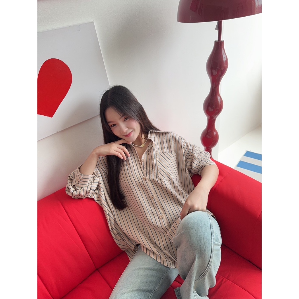 เสื้อเชิ้ตลายทาง Oversize ใส่สบาย ดูดี สไตล์เกาหลี ผ้าเนื้อดี นุ่มสบาย มีเท็กเจอร์ของตัวผ้า ลายทางคลาสสิค ไม่เคยตกยุค