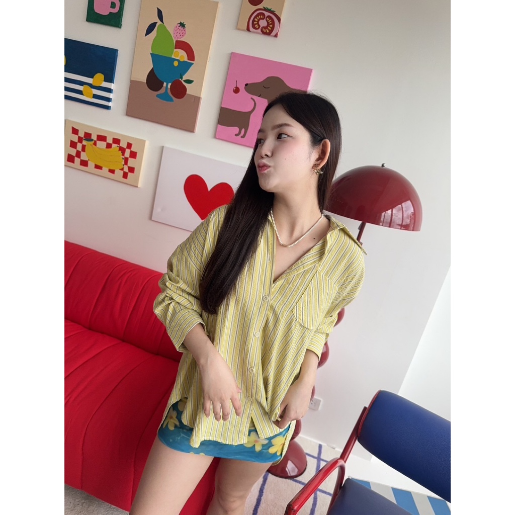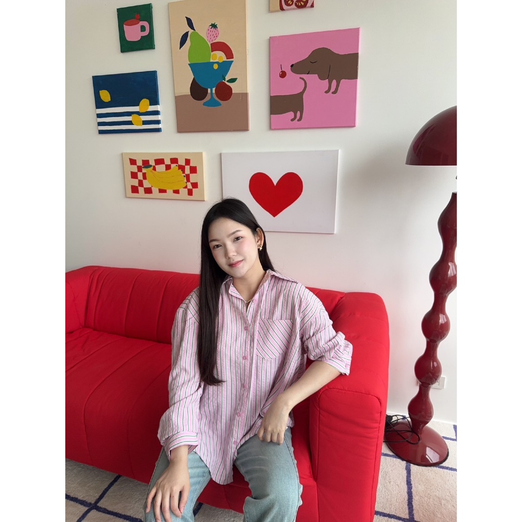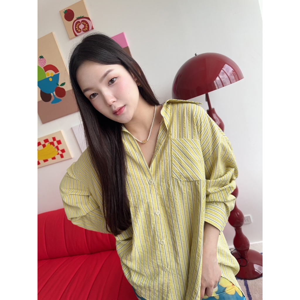 เสื้อเชิ้ตลายทาง Oversize ใส่สบาย ดูดี สไตล์เกาหลี ผ้าเนื้อดี นุ่มสบาย มีเท็กเจอร์ของตัวผ้า ลายทางคลาสสิค ไม่เคยตกยุค