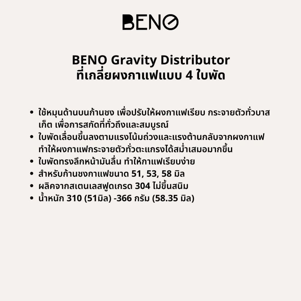 - ที่เกลี่ยผงกาแฟแบบ 4 ใบพัด ใช้หมุนด้านบนก้านชง เพื่อปรับให้ผงกาแฟเรียบ กระจายตัวทั่วบาสเก็ต เพื่อการสกัดที่ทั่วถึงและสมบูรณ์