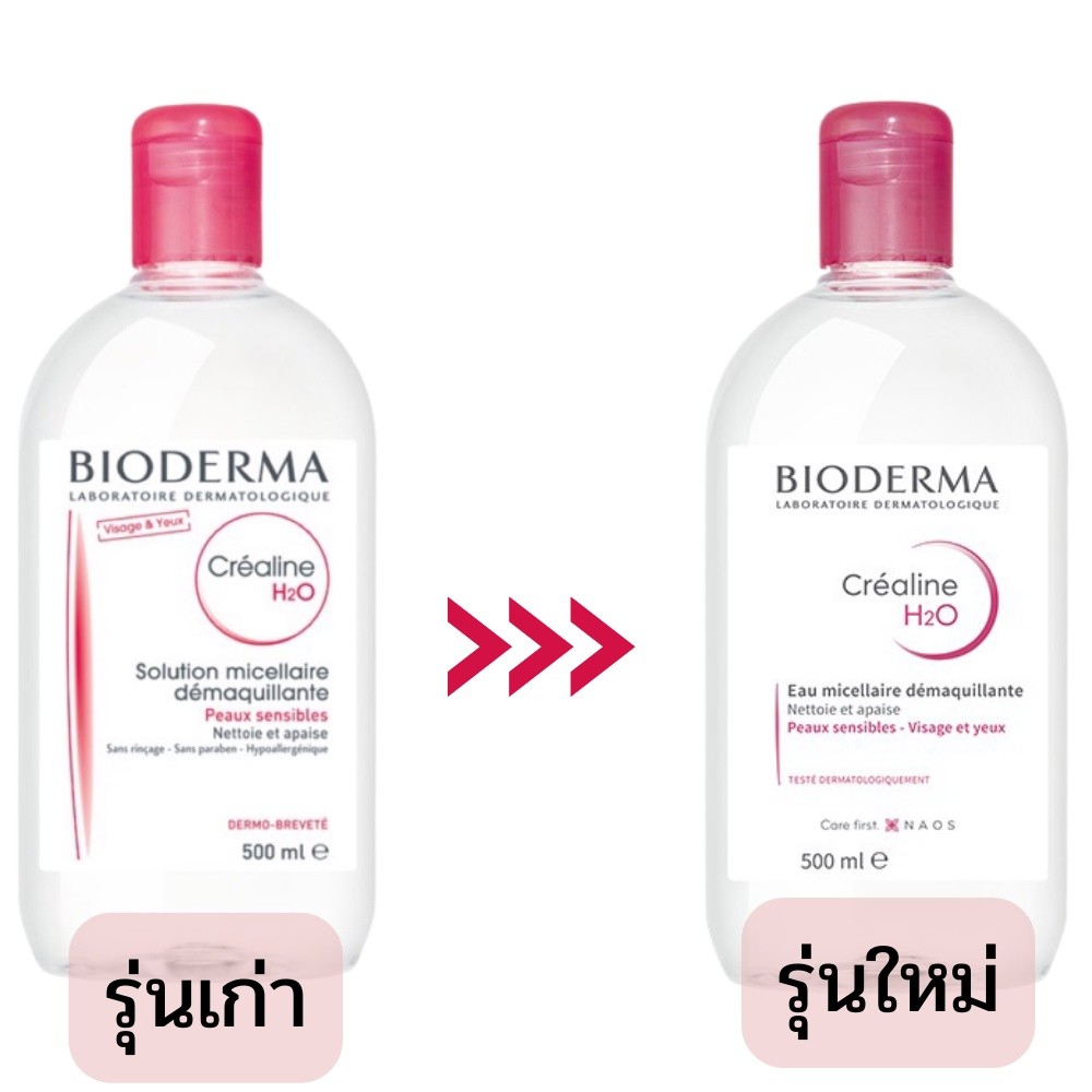 Bioderma Crealine/Sensibio H2O Make-up Removing Micelle Solution ขนาด 500ml ผลิตภัณฑ์ทำความสะอาดสำหรับผิวบอบบางแพ้ง่าย เทคโนโลยี Micellar Water ขจัดสิ่งสกปรกหมดจดทั้งเมคอัพและสิ่งสกปรกต่างๆ โดยไม่ต้องล้างน้ำซ้ำ ด้วยอนุภาคเล็กๆ ในน้ำที่จะดึงอนุภาคน้ำมันของเครื่องสำอางออกจากผิว รวมถึงสิ่งสกปรกต่างๆ โดยมีความเป็นกรดอ่อนๆ ไม่ทำให้ผิวเสียความเป็นกรดด่างตามธรรมชาติ อ่อนโยนแม้ผิวรอบดวงตา พร้อมคุณสมบัติในการเติมความชุ่มชื่น หลังทำความสะอาดผิวจึงเนียนนุ่มไม่แห้งตึง