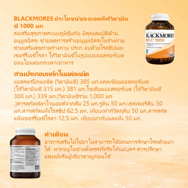 Blackmores Bio C® 1000 ช่วยเพิ่มวิตามินซีให้กับคุณ เพื่อลดความรุนแรงและระยะเวลาของอาการไข้หวัดและสนับสนุนสุขภาพของระบบภูมิคุ้มกัน เป็นสูตรที่มีศักยภาพสูงที่มาในรูปแบบแท็บเล็ตที่สะดวกต่อวัน