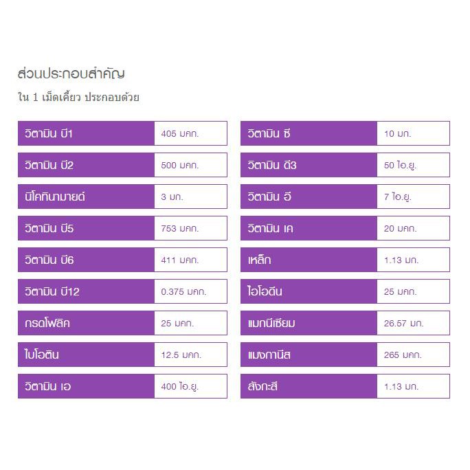 ประกอบด้วยวิตามินและแร่ธาตุ 18 ชนิด