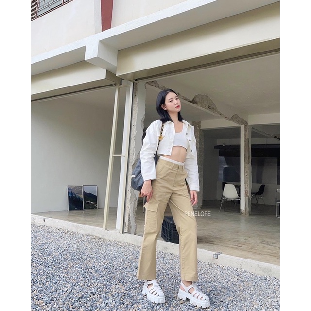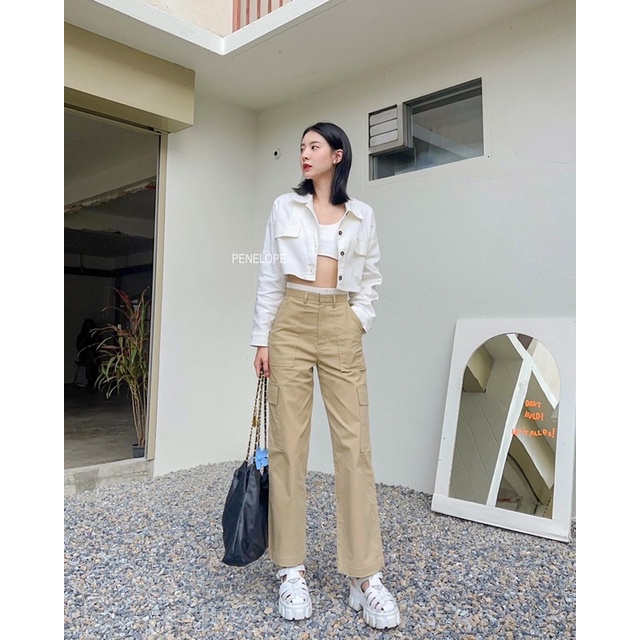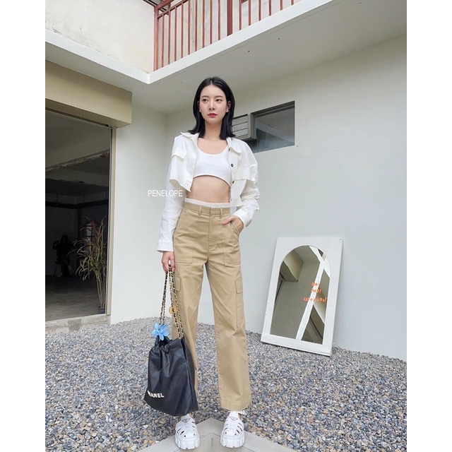 5สี กางเกงขายาว กางเกงคาร์โก้ มินิมิล ออกแบบสวย สไตล์วินเทจ#…