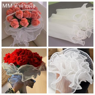 กระดาษห่อช่อดอกไม้ ประดับมุก 4 เมตร เส้นด้ายลูกไม้ตาข่าย วา…