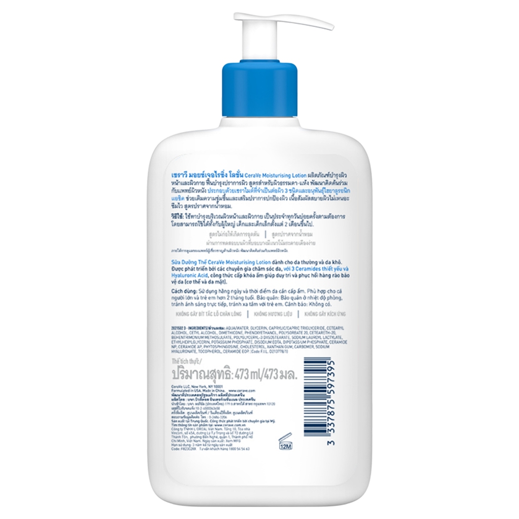 โลชั่นบำรุงผิวให้ความชุ่มชื้นตลอดวันและช่วยเสริมปราการปกป้องผิว สำหรับผิวะรรมดา-ผิวแห้ง ผสานเซราไมด์ที่จำเป็นต่อผิว3ชนิดและMVE Technology ลิขสิทธิ์เฉพาะของเซราวี นวัตกรรมกักเก็บความชุ่มชื้น ให้ผิว