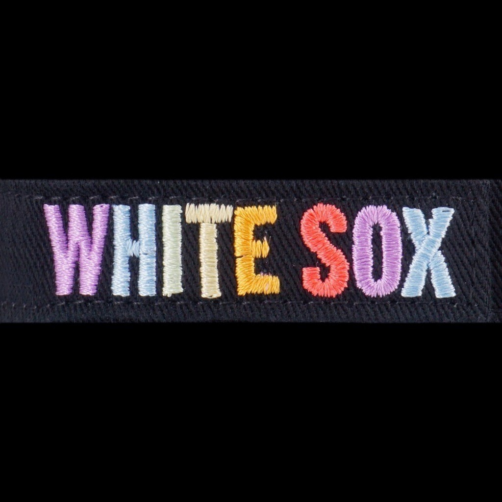 - The rear strap end features a “WHITE SOX” wordmark with rainbow lettering.