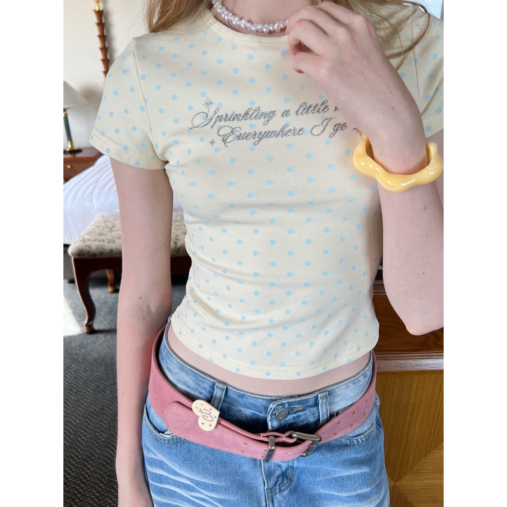 เสื้อยืดอเมริกันเผ็ดสาวเสื้อผ้า2025 ฤดูร้อนใหม่รายการสัมผัสส…