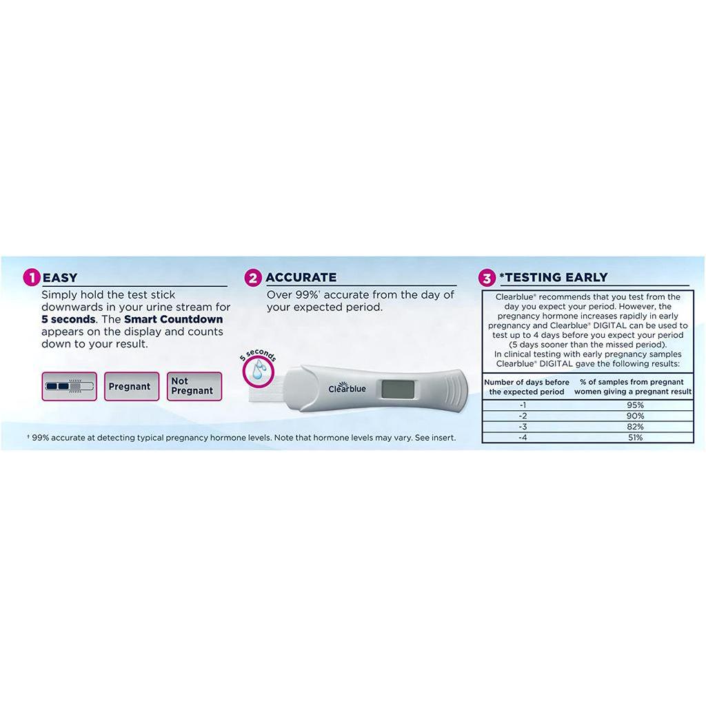 • Results 6 days sooner. Clearblue Digital Pregnancy Tests can be used to test up to 5 days before your expected period - that's 6 days sooner than waiting until you miss your period to test