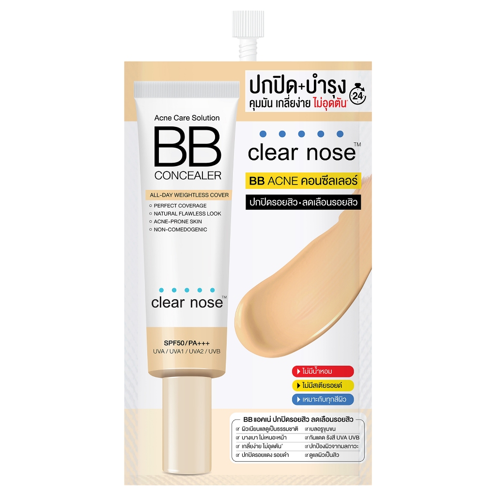 แอคเน่ แคร์ โซลูชั่น บีบี คอนซีลเลอร์ ปกปิดรอยสิว เนื้อสัมผัสบางเบา แต่ปกปิดได้ดี ให้ผิวสวยเป็นธรรมชาติ ลดปัญหาสิว ช่วยป้องกันการเกิดสิวใหม่ ลดความเครียดสะสมในผิวซึ่งเป็นสาเหตุของสิว ผิวแพ้ง่ายและริ้วรอย บีบีครีมเนื้อนุ่ม เกลี่ยง่าย ไม่ระคายเคืองผิว ไม่อุดตัน พร้อมช่วยปรับสีผิวให้เรียบเนียนสม่ำเสมอ และเทคโนโลยี Hybrid Sunscreen ป้องกันแสงแดด SPF50 PA+++UVA1,UVA2 และ UVB