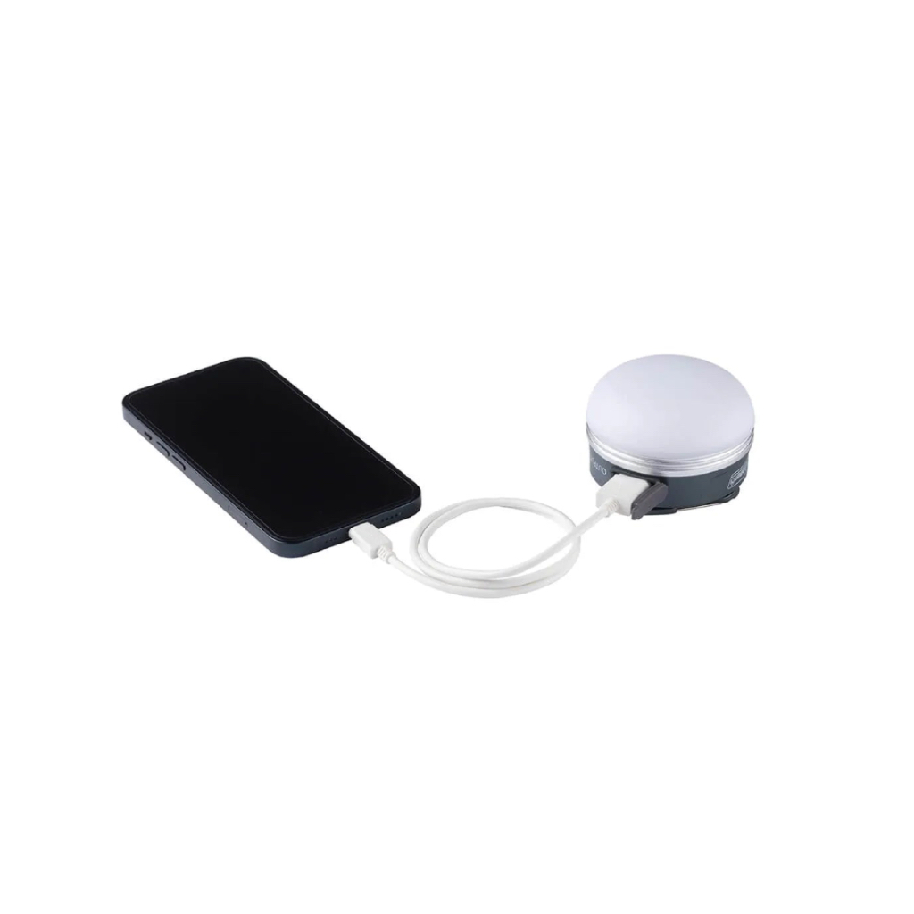 ไฟแขวนที่ส่องสว่างสำหรับพื้นที่ในห้องเต็นท์ สามารถชาร์จและใช้งานซ้ำได้ มีแสงที่ให้ความรู้สึกอบอุ่น ซึ่งในโหมด High จะส่องสว่างถึง 250 ลูเมน มีแม่เหล็กสามารถติดตั้งบนเสาได้ ตัวไฟมีขนาดเล็กและมีรูปทรงกลมที่เหมาะกับมือผู้หญิง พร้อมออกแบบด้วยสีเมทัลลิคที่ดึงดูดสายตา สามารถชาร์จโทรศัพท์มือถือได้