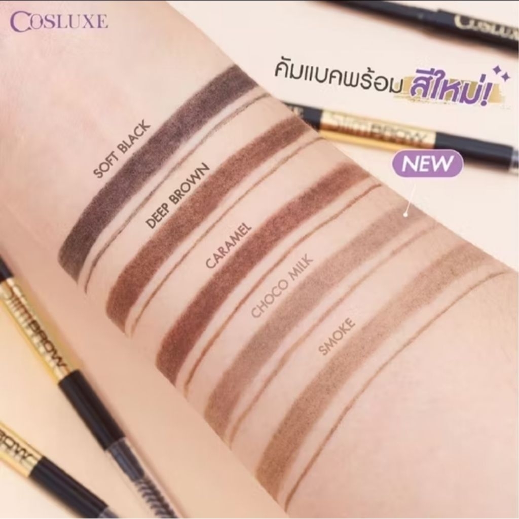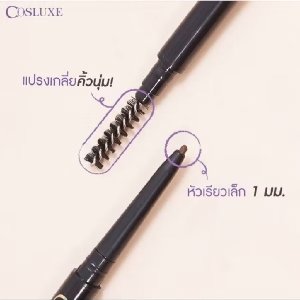 ดินสอเขียนคิ้วคุณภาพดีจาก Cosluxe เนื้อฝุ่นอัดแข็งแท่งหมุนแบบออโต้ ไม่ต้องเหลา นวัตกรรมหัวเรียวเล็กเพียง 1 mm. ให้เส้นเรียวสวย เม็ดสีคมชัด สูตรกันน้ำ ติดทนนานตลอดวัน มาพร้อมแปรงปัดขนาดเรียวเล็ก ให้คุณเนรมิตคิ้วคู่สวยได้อย่างโดดเด่น ดังมืออาชีพ