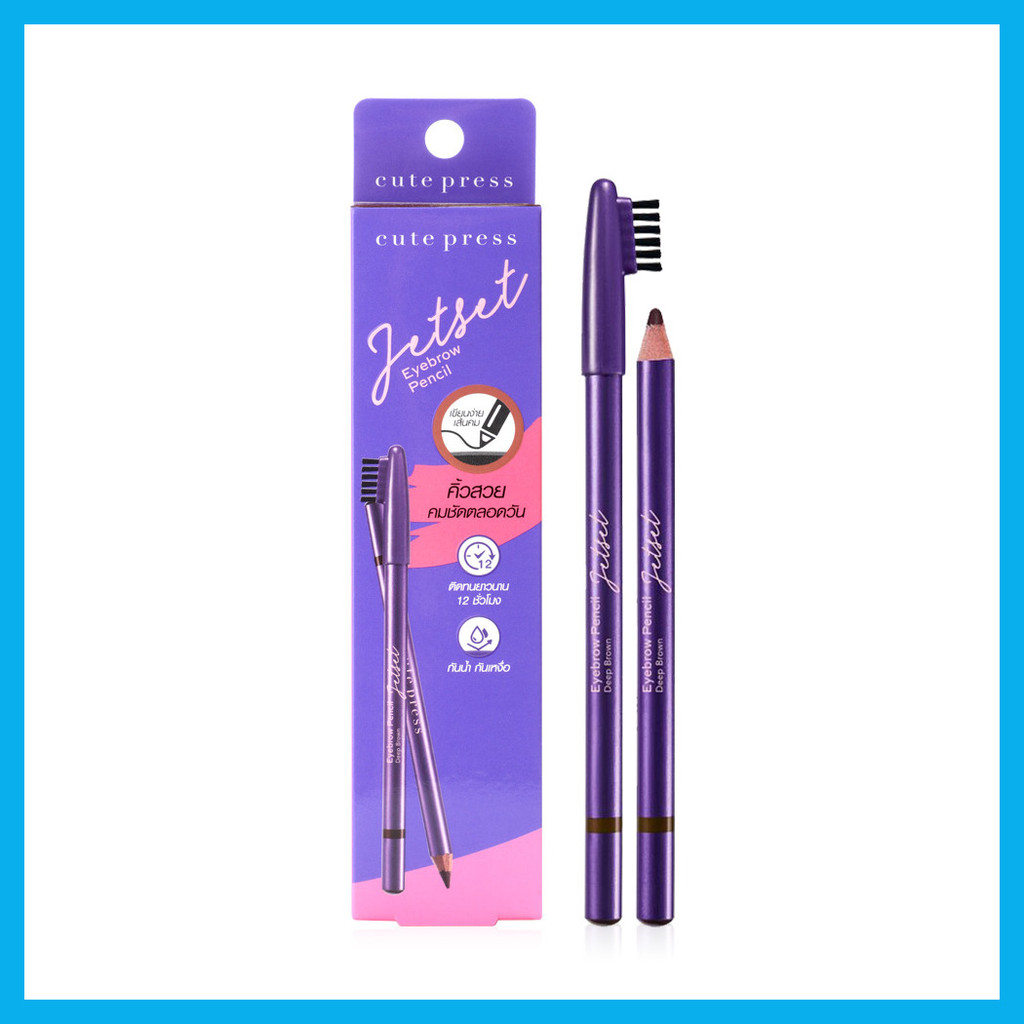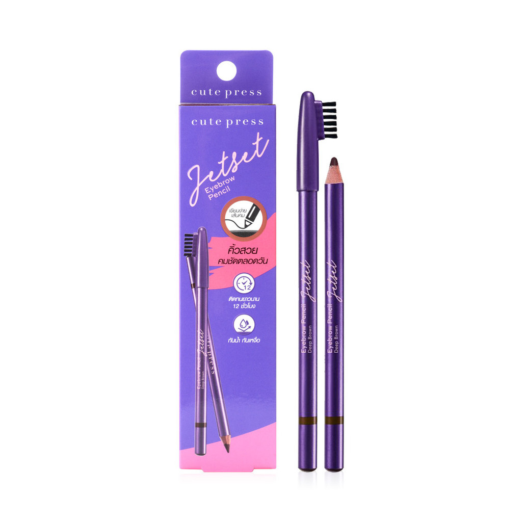 Cute Press Jet Set Eyebrow Pencil #Deep Brownดินสอเขียนคิ้วชนิดเหลาเนื้อละเอียดนุ่ม เขียนง่ายให้เส้นคมสามารถวาดโครงและเติมระบายคิ้วเพื่อคิ้วสวยคมชัดตลอดวันเส้นไม่ลบเลือนระหว่างวัน ให้คิ้วสวยเป็นธรรมชาติกันน้ำ ติดทนนาน พร้อมบำรุงด้วยวิตามินอี
