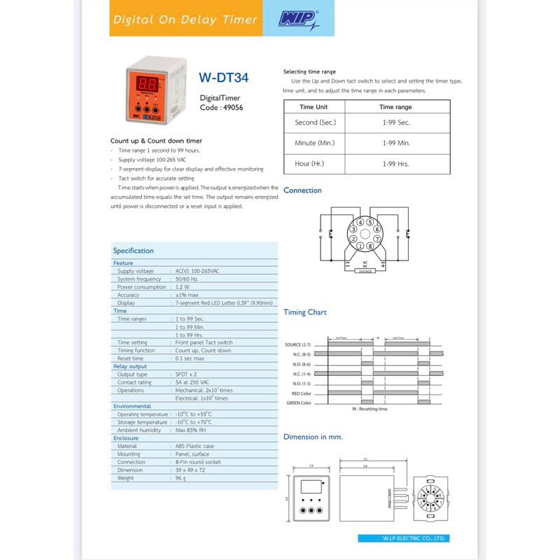 Digital Timer Count Up & Count down Timer W-DT34 • ฿515