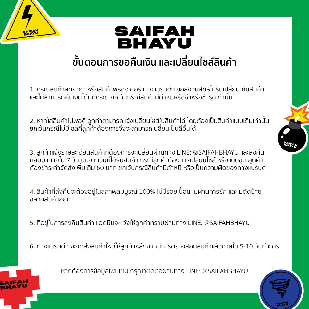 2. สีของสินค้าในรูปอาจแตกต่างจากสินค้าจริงเนื่องจากการปรับแสงในการถ่ายภาพ และการตั้งค่าการแสดงผลของแต่ละหน้าจอไม่เหมือนกัน