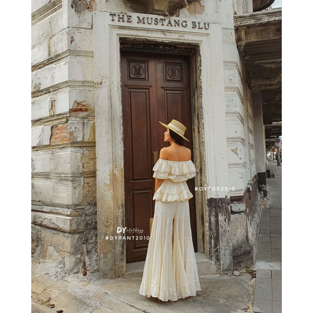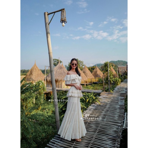 เสื้อแต่งระบาย ทรงรูดอก จะใส่ปาดไหล่ หรือดึงขึ้นมาปิดไหล่ก็ได้ น่ารักมากรุ่นนี้ ห้ามพลาดลุคนี้นะคะ เรียบหรู คุณหนู วินเทจ