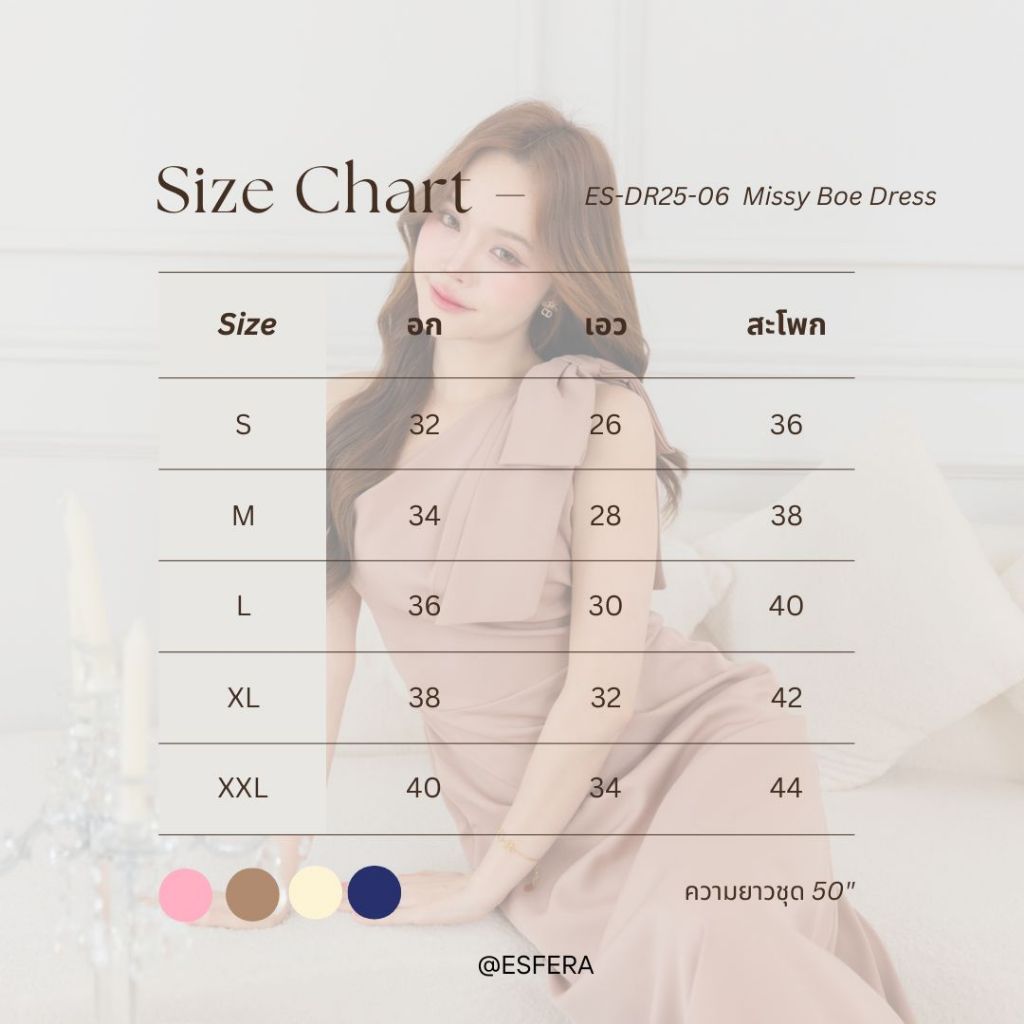 ES-DR25-06 Missy Boe Dress ( ครีม / ชมพูกะปิ / โอวัลติน / กรมท่า )**CF+แจ้งสี+ไซส์ด้วยนะคะ