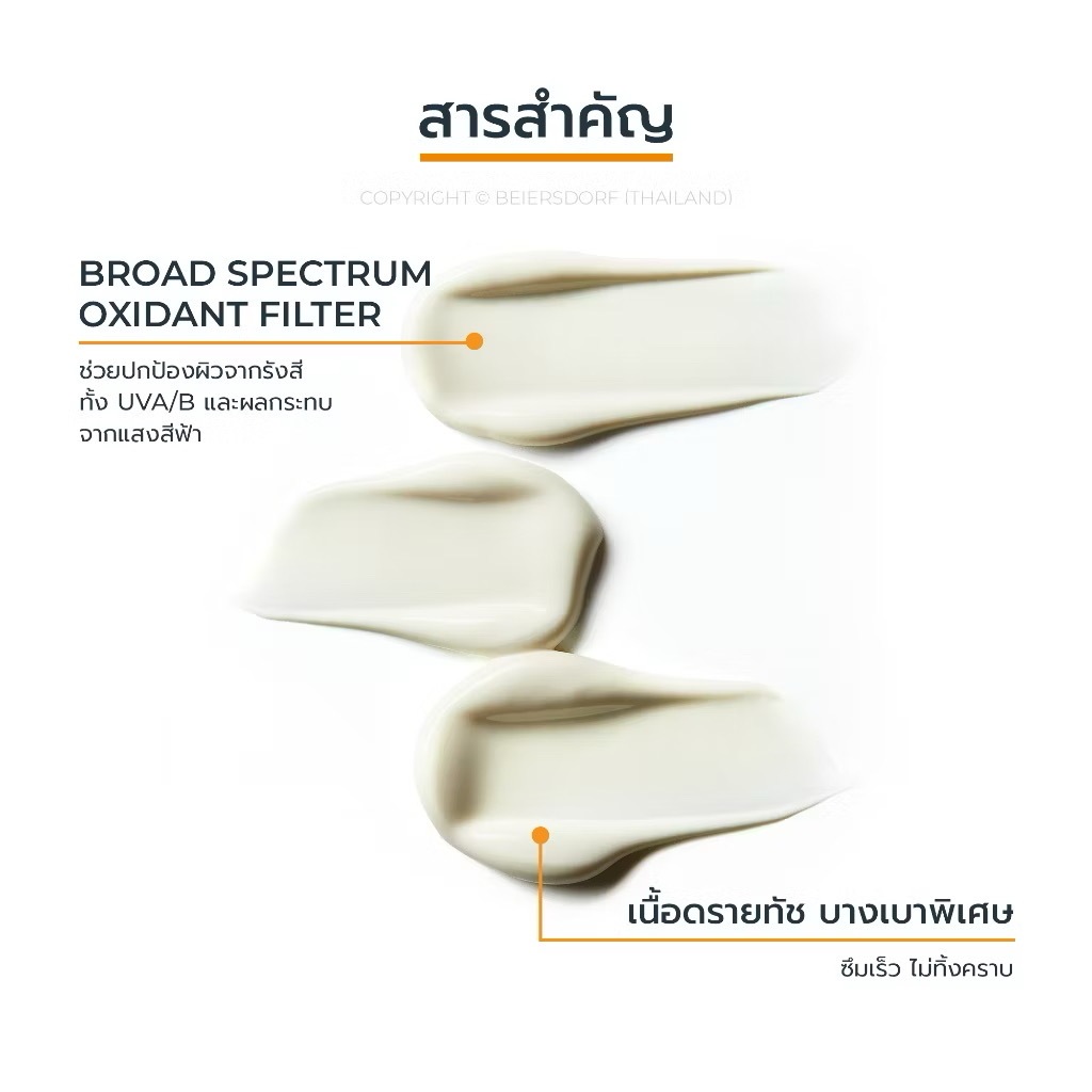 มีประสิทธิภาพในการปกป้องรังสี UVA/UVB และด้วย Broad-Spectrum Oxidant Filter ช่วยลดการทำร้ายผิวจากรังสี UV พร้อมลดโอกาสการเกิดจุดด่างดำ ฝ้าแดดฝังลึก1 ที่มีสาเหตุมาจากรังสี UV รวมถึง High Energy Visible Light2 ได้อย่างมีประสิทธิภาพสูง