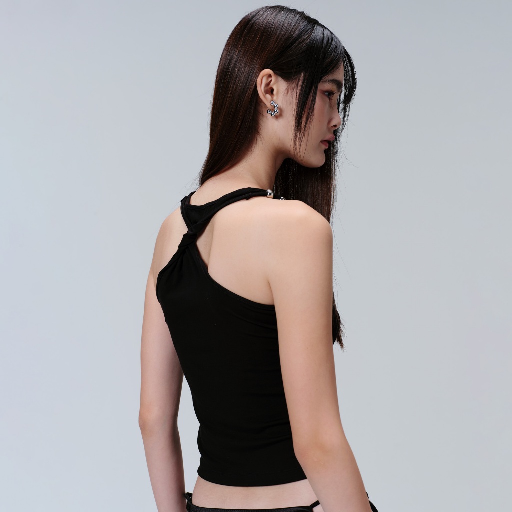 ทรงเสื้อแบบผูกข้าง ให้ไหล่และช่วงเอวดูเด่นขึ้น ผ้าสามารถยืดได้เยอะ