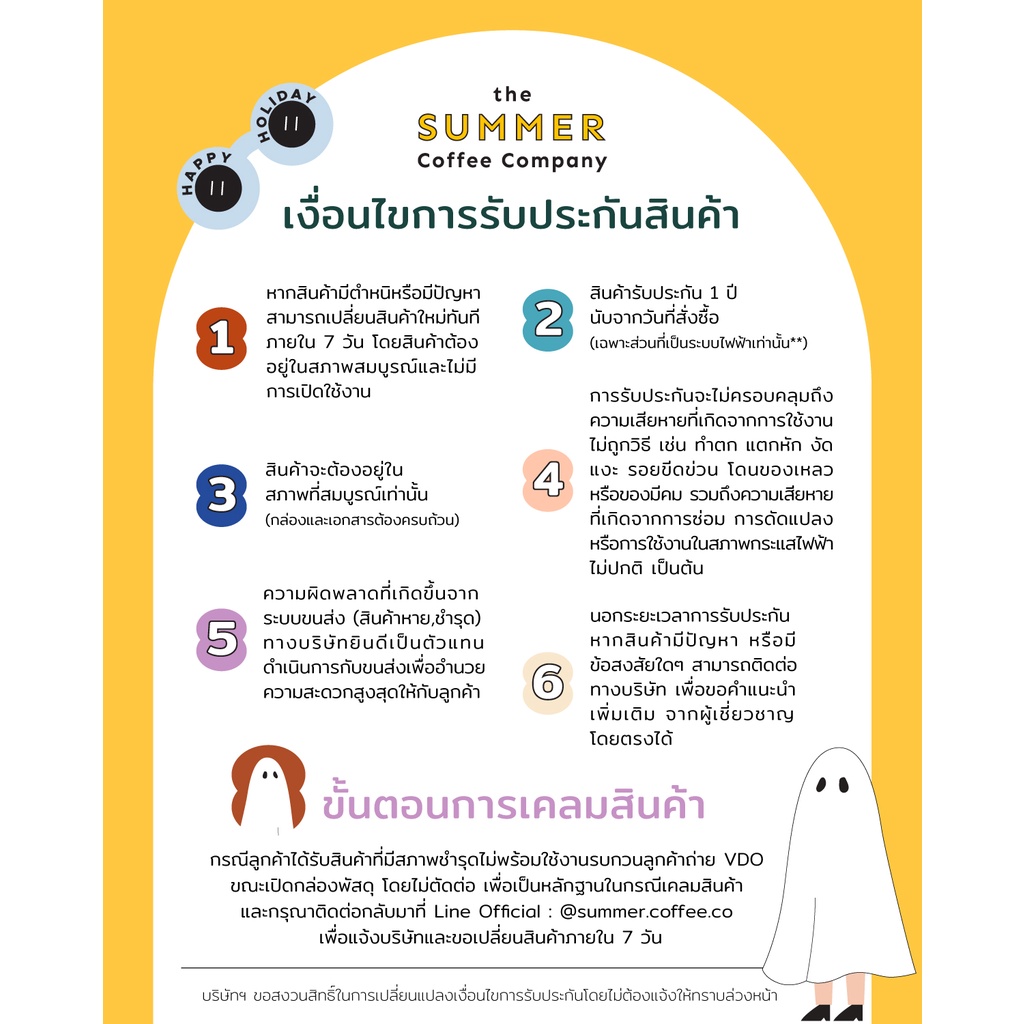 เงื่อนไขการรับประกันสินค้า The Summer Coffee Company