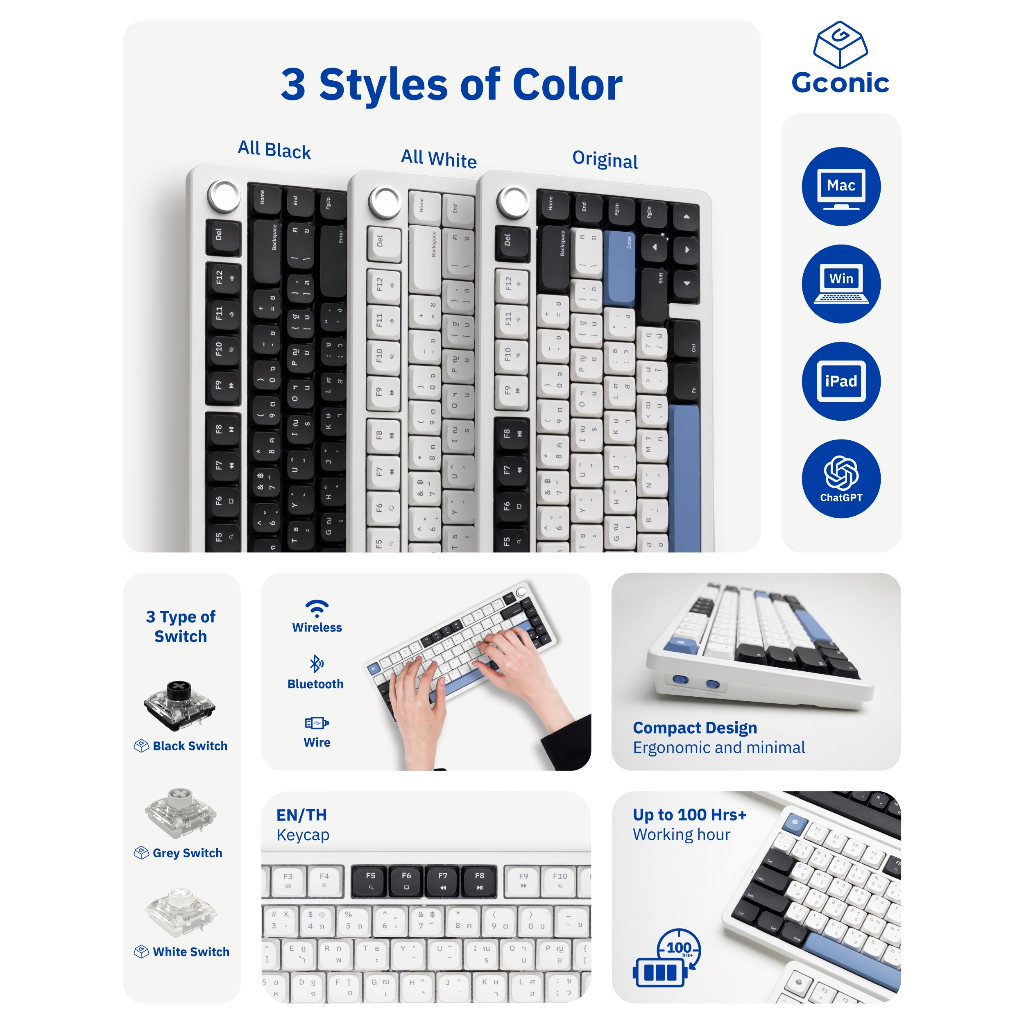ที่สุดของคีย์บอร์ดปุ่มเตี้ยสุดพรีเมี่ยม ขนาด 75% แบบ Low profile พร้อม อะลูมิเนียม Knob รุ่นใหม่จาก Gconic ที่ได้รับการออกแบบและพัฒนาขึ้นใหม่ในทุกๆรายละเอียดอย่างประณีต มอบประสบการณ์การพิมพ์และการใช้งานสุด Exclusive มากกว่ารุ่นไหนๆ อัดแน่นไปด้วยรายละเอียด , เทคโนโลยี และความทันสมัย