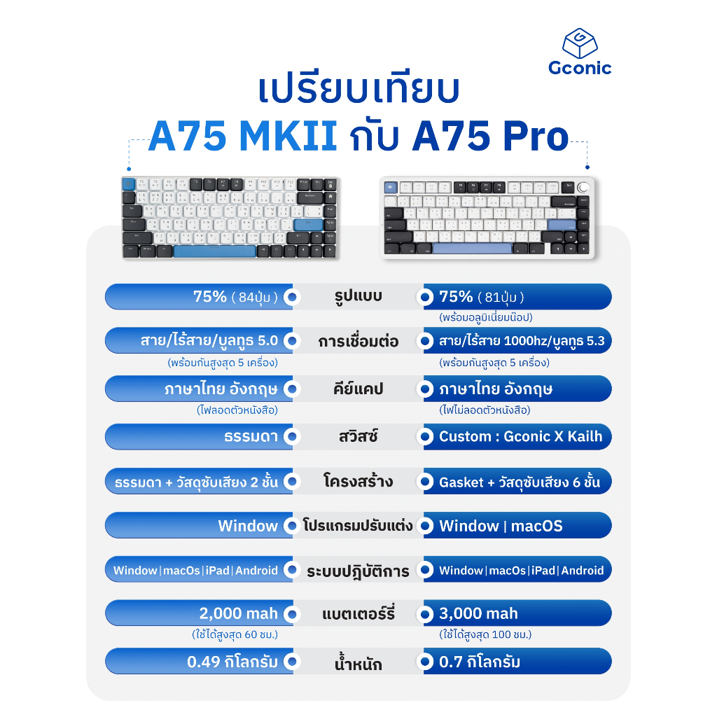 🟦 Gconic A75 Pro Ultra Slim Mechanical Keyboard