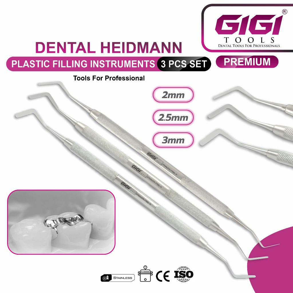 GIGI Tools Anterior Composite Dental Flat Plastic Filling Premium Instruments Heightman 3Pcs Set Stainless Steel CE