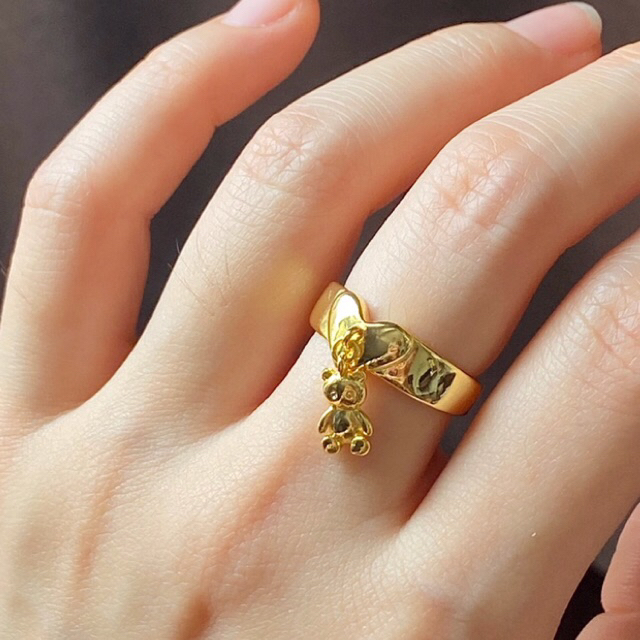 A super cute gold ring with a teddy charm🧸