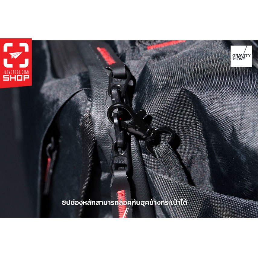 - ซิปช่องหลักสามารถล็อคกับฮุคข้างกระเป๋าได้