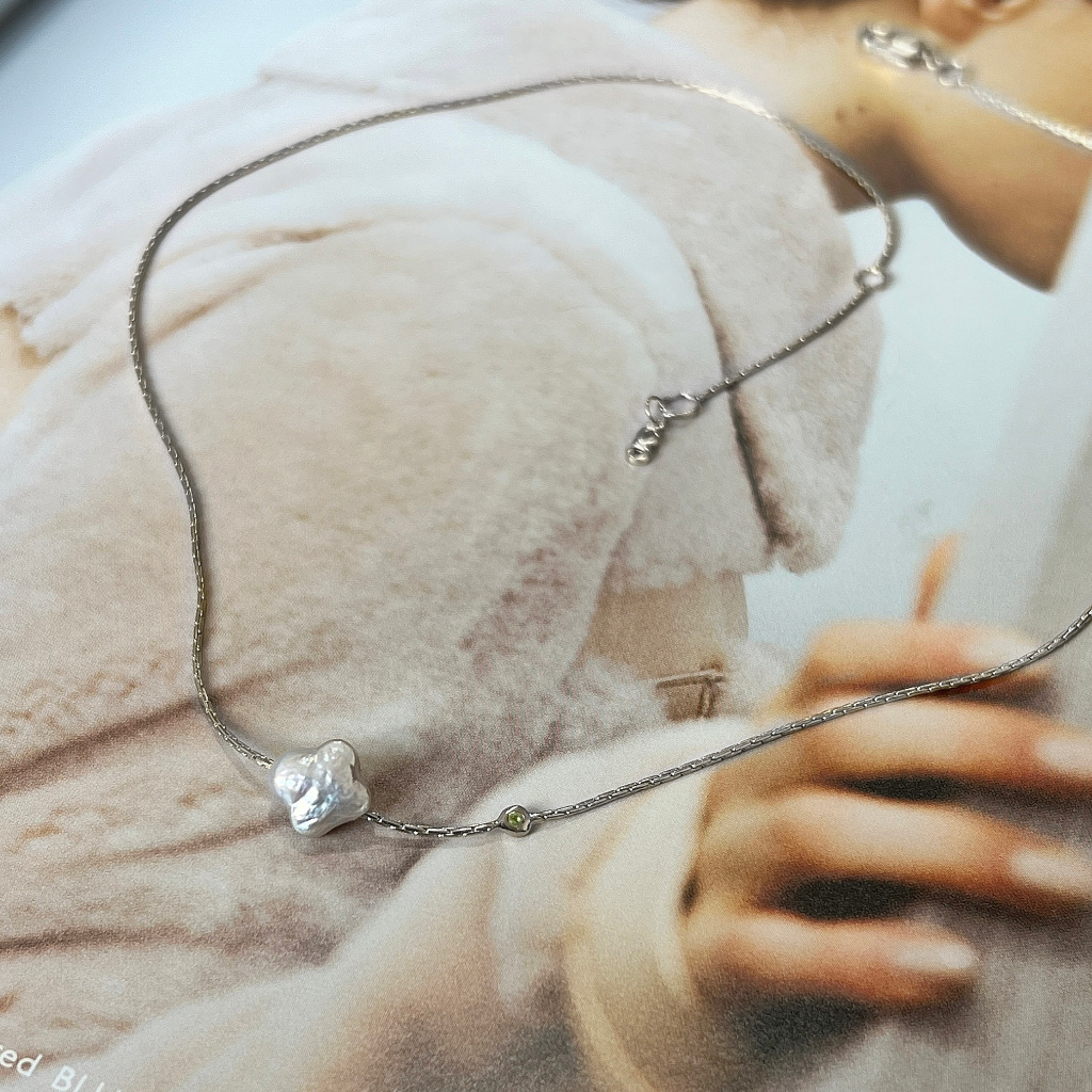 - ประดับด้วย ไข่มุกน้ำจืด fresh water pearl ขนาดประมาณ 10 x 10mm และ green peridot ขนาด 1mm