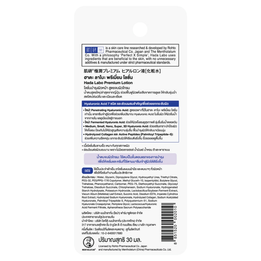 HADA LABO Premium Hydrating Lotion ขนาด 30 ml. โลชั่นน้ำตบบำรุงผิว สูตรจบผิวโทรม น้ำตบสูตรใหม่ล่าสุด เนื้อโลชั่นเข้มข้นพิเศษ ช่วยพื้นฟูผิวโทรมแห้งเสียขาดการดูแล ผิวที่อ่อนล้าให้กลับมาชุ่มชื้นยาวนาน เปล่งปลั่งเนียนละเอียดยิ่งขึ้นและชุ่มชื้นทันที