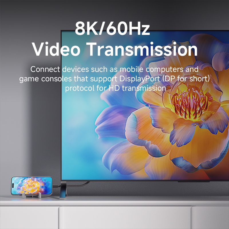 การส่งสัญญาณวิดีโอ 8K / 60Hz: เชื่อมต่อกับโทรศัพท์มือถือ / คอมพิวเตอร์และเครื่องเล่นเกมที่รองรับโปรโตคอล DP เพื่อให้รับส่งสัญญาณ HD