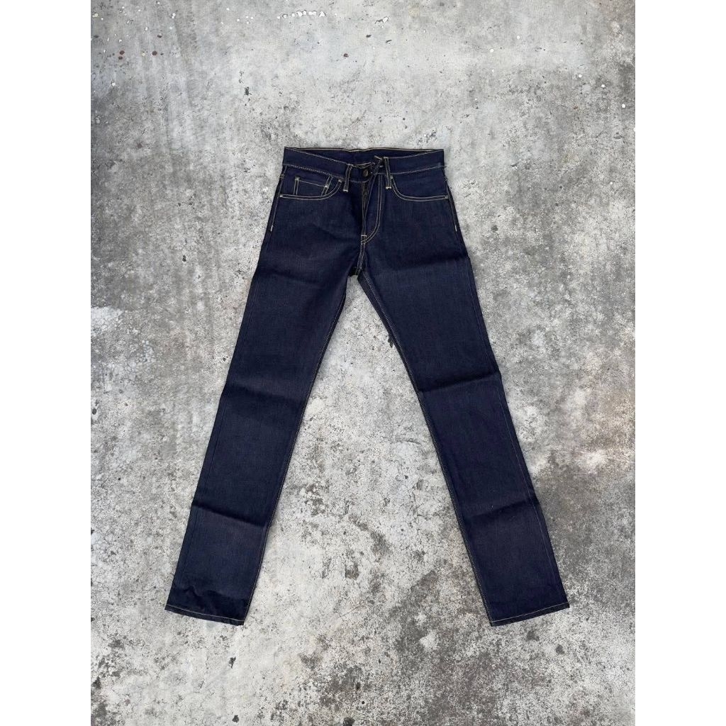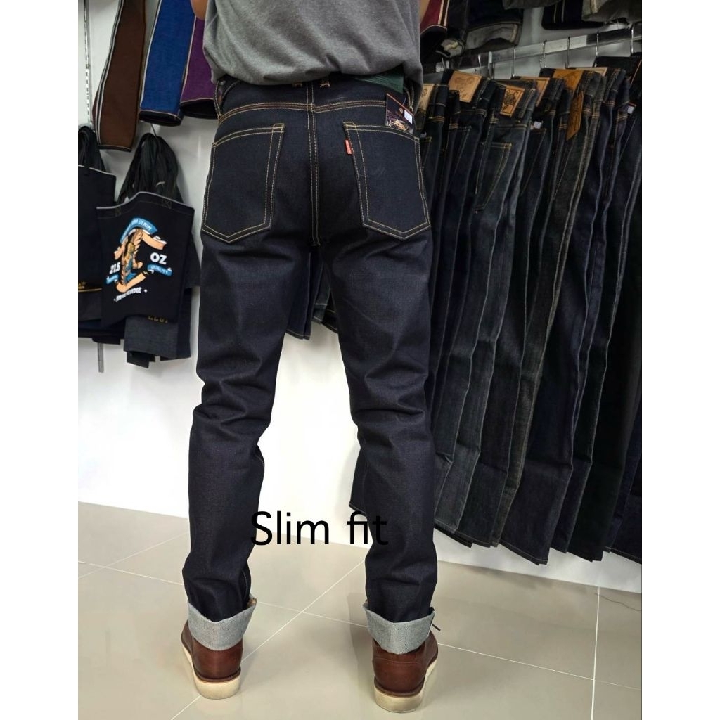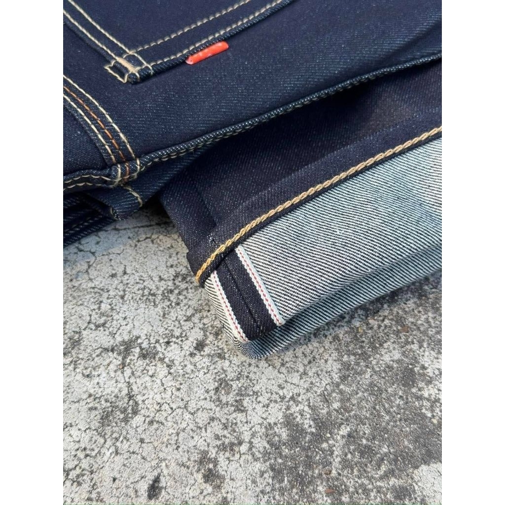 -ผ้า sanforized 18Oz. สี Dark Indigo สีเข้มสุด ริมแดง ผ้าเนียนไม่ติดสลาฟ แข็ง กระด้าง สายเอฟวี่ถูกใจแน่นอนหรือผู้ที่อยากจะเริ่มต้นใส่ยีนส์เฟด จะเกิดความท้าทายในการสวมใส่มาก