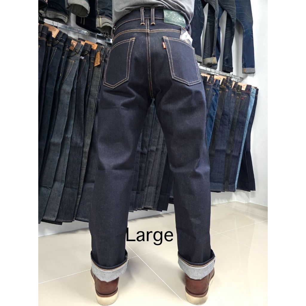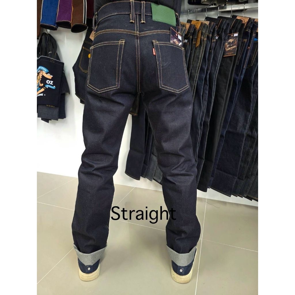 พลังม้าเขียว18Oz. 890 (Hard Jeans) อาร์คซ่อน ริมแดง หูเข็มขัดหลังคู่ร้อยเชือกทุกหู ป้ายเขียว ผ้าสี Dark Indigo เข้มจัด มีสามทรงกระบอกเล็ก,ตรง,ใหญ่ อาร์คซ่อน ราคา890.-