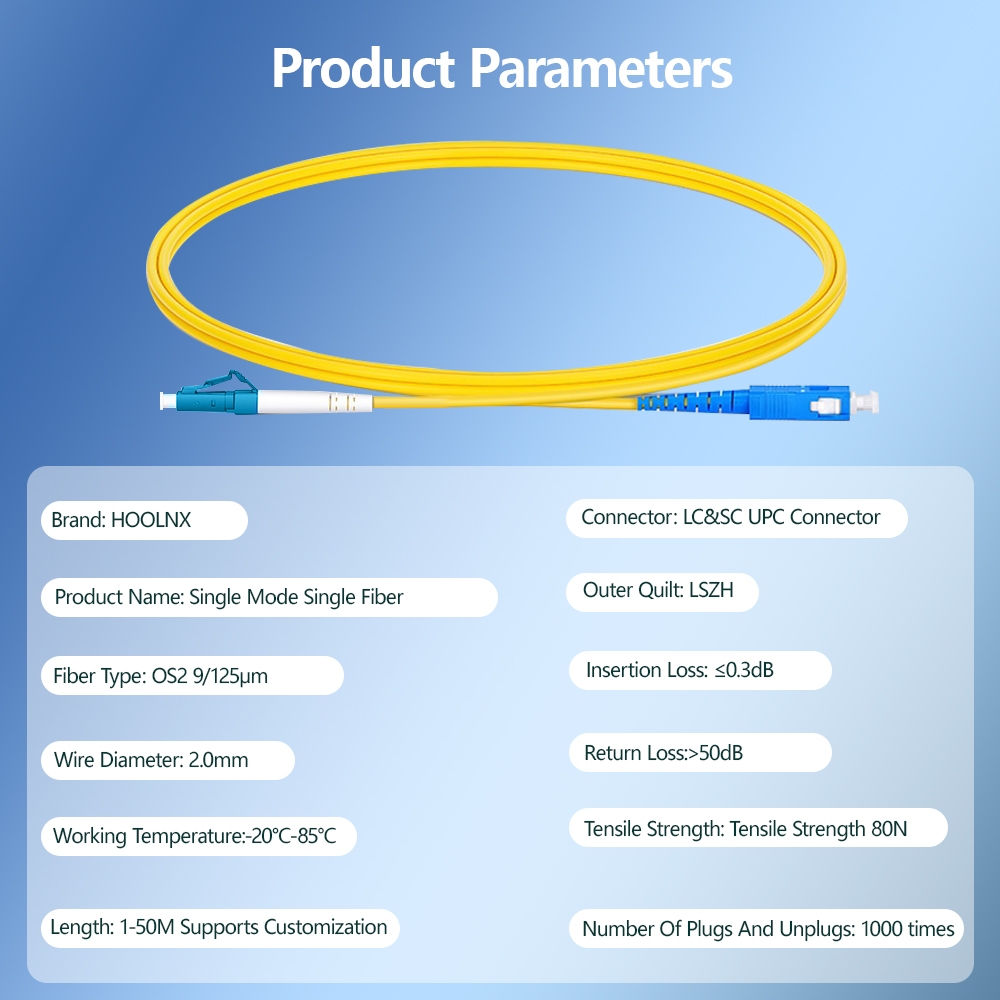 Hoolnx OS2 LC-SC Single Mode Simplex Fiber Optic Patch Cable 2.0mm LSZH - Gigabit Speed, Low Smoke Halogen-Free, Custom ความยาว 1-100m (ข้อมูล Center/5G Ready)