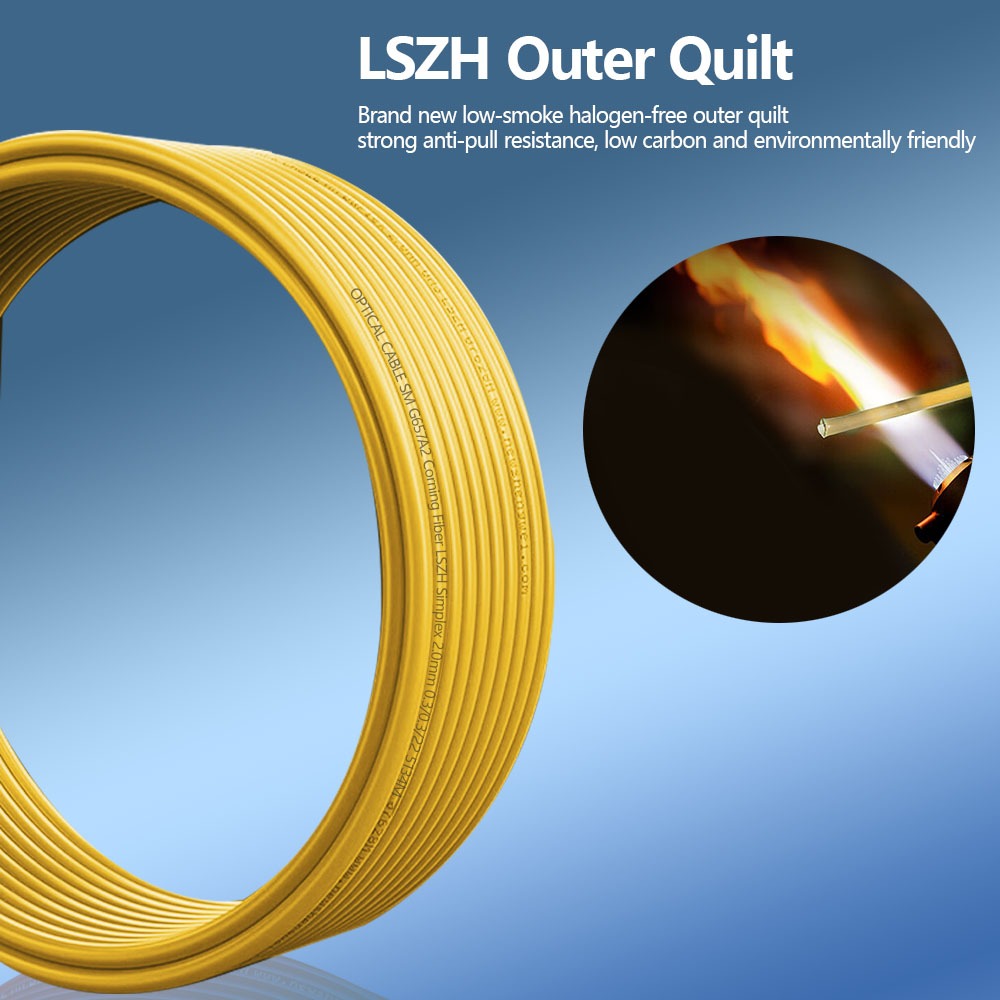 "ความยาวแน่นอนจาก 1 เมตรถึง 100 เมตรเพื่อลดของเสียและค่าใช้จ่าย" เสื้อแจ็คเก็ตขนาด 2.0 มม. ที่ยืดหยุ่นช่วยลดความยุ่งยากในการเดินเส้นทางในพื้นที่แคบ ๆ เช่นห้องเซิร์ฟเวอร์ขนาดกะทัดรัดของสิงคโปร์หรือถาดรองสายเคเบิลอุตสาหกรรม "