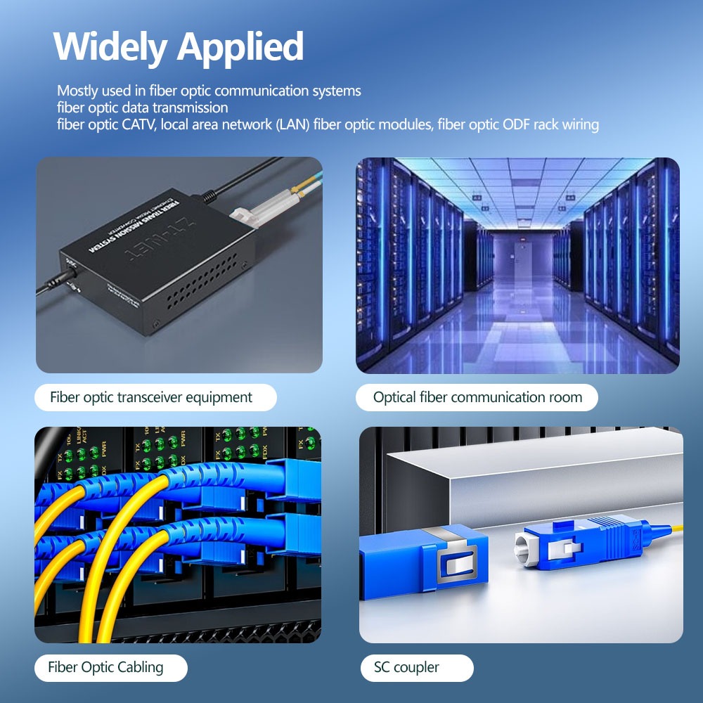 สายเคเบิลแพทช์นี้เชื่อมโยงอินเทอร์เฟซ LC ความหนาแน่นสูง (สวิตช์เราเตอร์) และระบบ GPON / FTTH ที่เข้ากันได้กับ SC เพื่อให้มั่นใจได้ว่าการเชื่อมต่อข้ามได้อย่างราบรื่นสำหรับศูนย์ข้อมูลศูนย์กลางโทรคมนาคมและเครือข่ายองค์กรทั่วเอเชียตะวันออกเฉียงใต้"